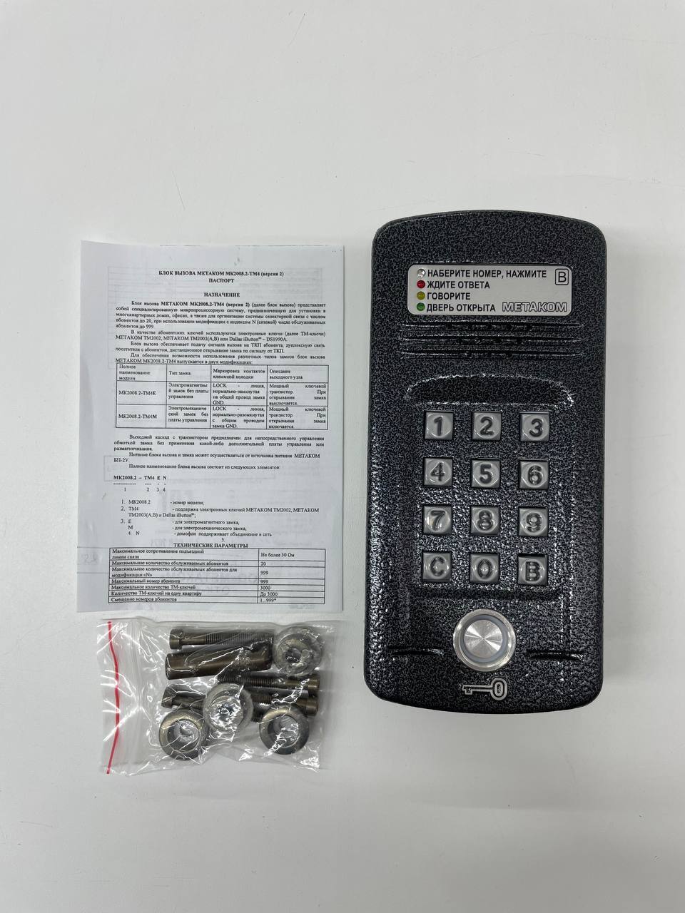 Антивандальный блок вызова МЕТАКОМ МК2008.2-ТМ4E , контроллер Touch Memory для ключей типа ТМ2002, ТМ2003, ТМ2004, DS1990A, индивидуальный код, свето- и аудиоиндикация режимов работы. Рассчитан на работу с электромагнитным замком.