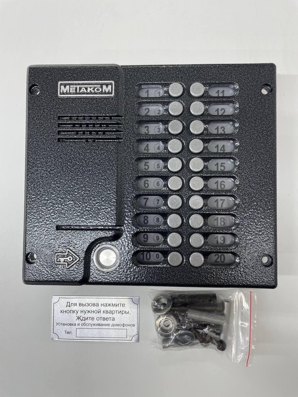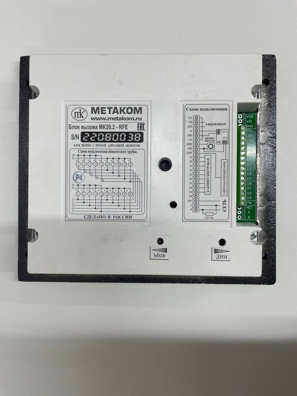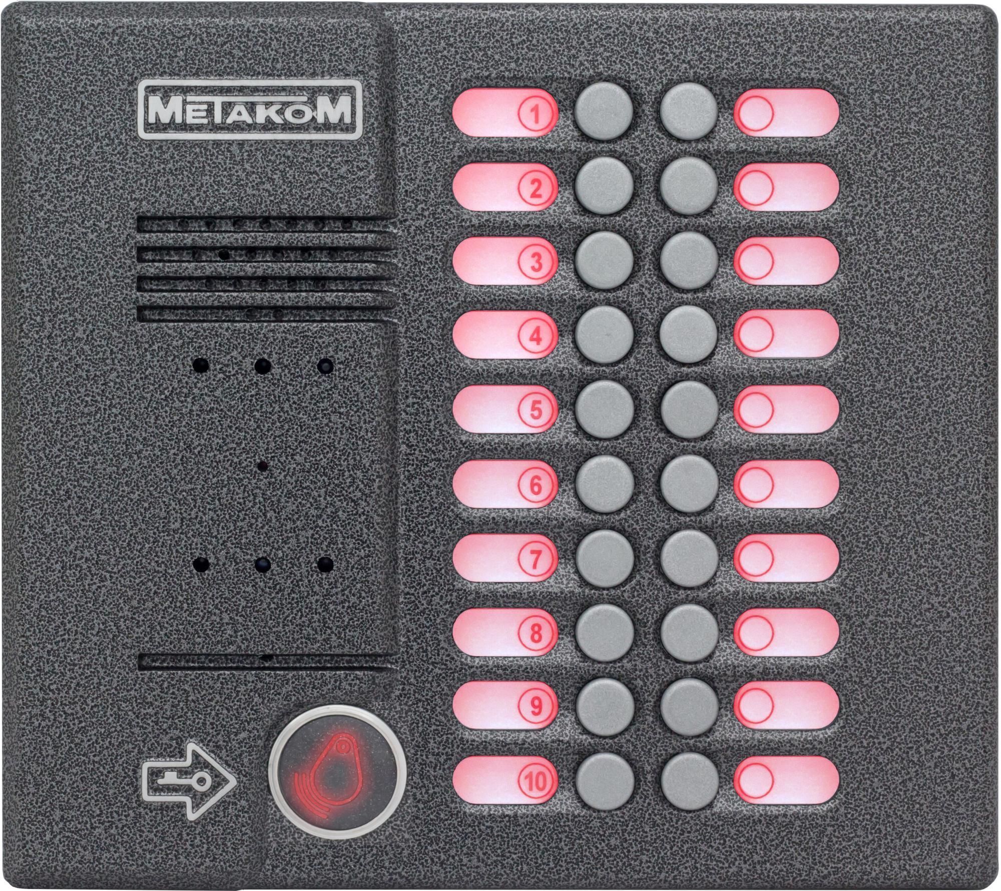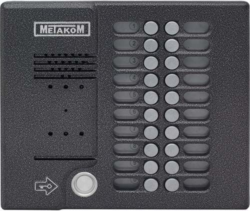 Блок вызова видеодомофона предназначен для установки в многоквартирных домах, офисах для организации селекторной связи с координатной системой адресации с числом абонентов до 20.Обеспечивается работа совместно с абонентскими устройствами производства МЕТАКОМ (видеомониторы MKV-VM5, MKV-VM7, MKV-VM8, трубки квартирные переговорные ТКП-01, ТКП-05М, ТКП-06М, ТКП-10М, ТКП-12М, ТКП-14М или другие, предназначенные для домофонов с координатной системой адресации).Блок вызова видеодомофона MK20.2- TM4EV обеспечивает видеонаблюдение пространства перед входной дверью, звуковую связь абонента с посетителем и дистанционное открывание замка по сигналу от видеомонитора или ТКП. Наличие инфракрасной подсветки позволяет получить изображение на видеомониторе (при расстоянии до наблюдаемого объекта не более 1м) даже при полном отсутствии освещения.В качестве абонентских ключей используются электронные ключи METAKOM TM2002, МЕТАКОМ TM2003(A,B) или Dallas iButtontm – DS1990A (ТМ ключи).Замок также может быть открыт с помощью TM – ключа, с помощью кода, набираемого на блоке вызова домофона, или нажатием кнопки ВЫХОД, устанавливаемой у входной двери внутри подъезда