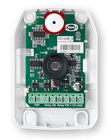 Объёмный совмещённый ИК+разбития стекла, микропроц., АК - 6 м х 120°, ИК - 12х12 м х 90°, антисаботажная зона, выбор чувств., термокомпенсация, режим «память тревоги», тампер, U-пит. 8…15В, I-потр. 15мА, IP30, tраб.-20…+50°С, 92×64×45 мм..