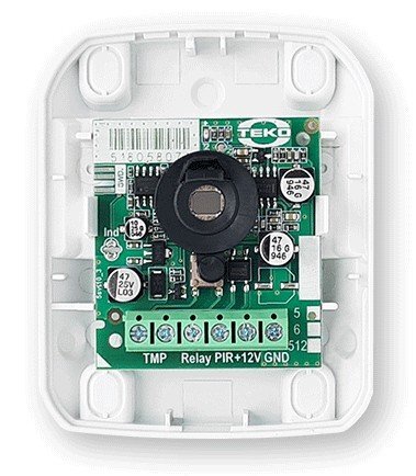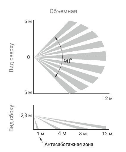 ИК, объемный, зона обнаружения 12м х 90°, антисаботажная зона, темпер.компенсация, выбор чувствительности, режим "память тревоги", тампер, U-пит. 8...15 В, I-потр.15 мА, IP41, t-раб.-30...+50°С, 75×58×48 мм