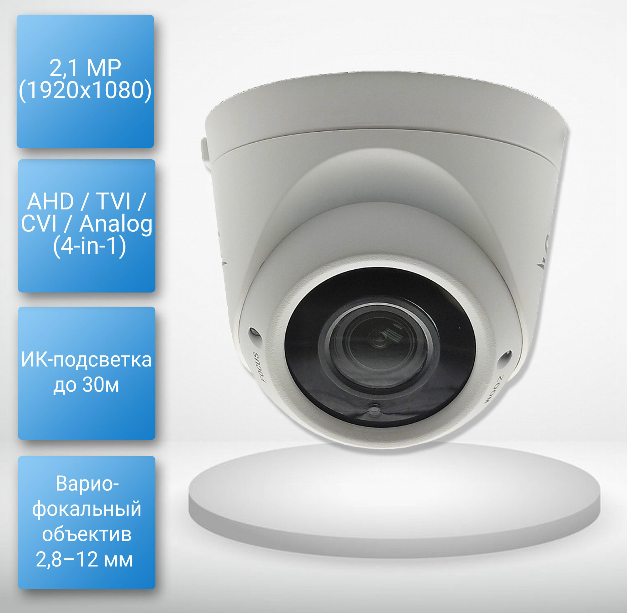 Видеоформаты: AHD / TVI / CVI / Analog – совместимость с большинством систем видеонаблюдения.