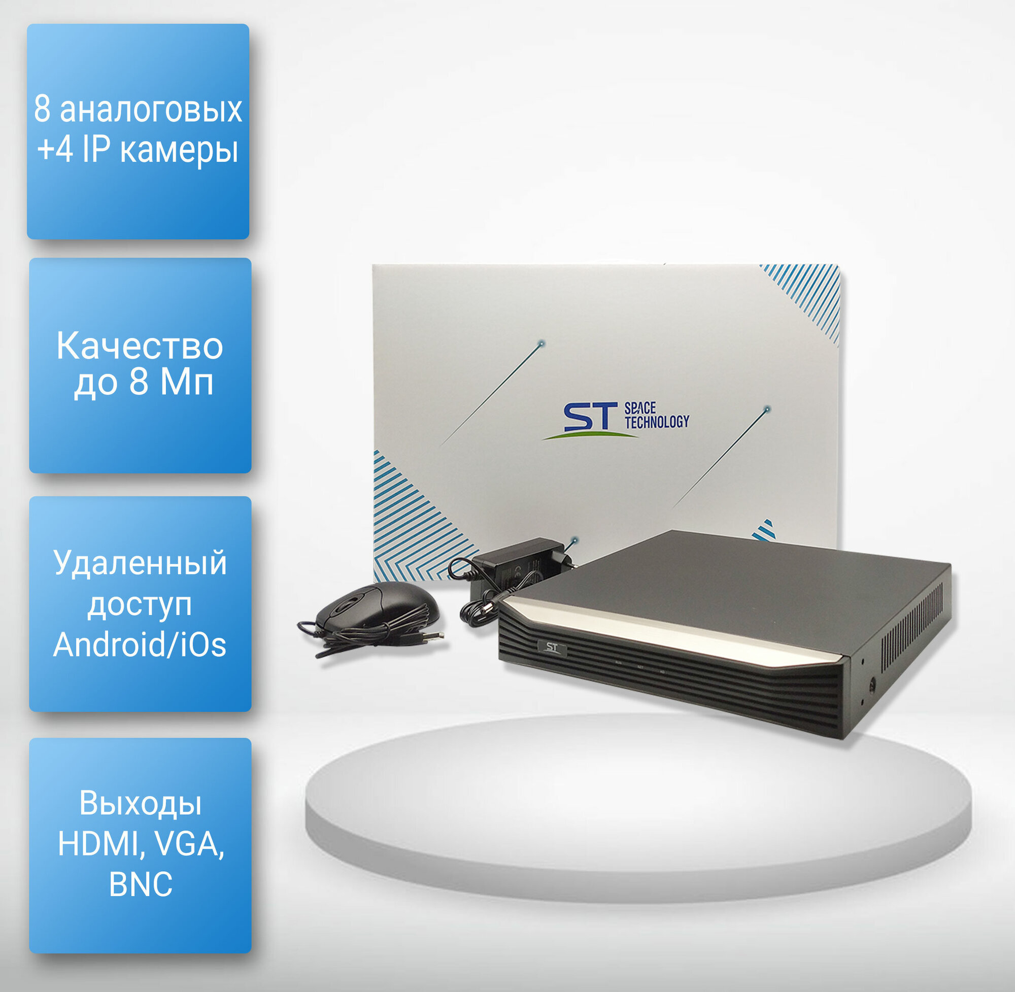 Мощное и универсальное устройство для организации видеонаблюдения. Поддерживает работу с аналоговыми (TVI/AHD/CVI/CVBS) и IP-камерами, обеспечивая до 12 подключений.