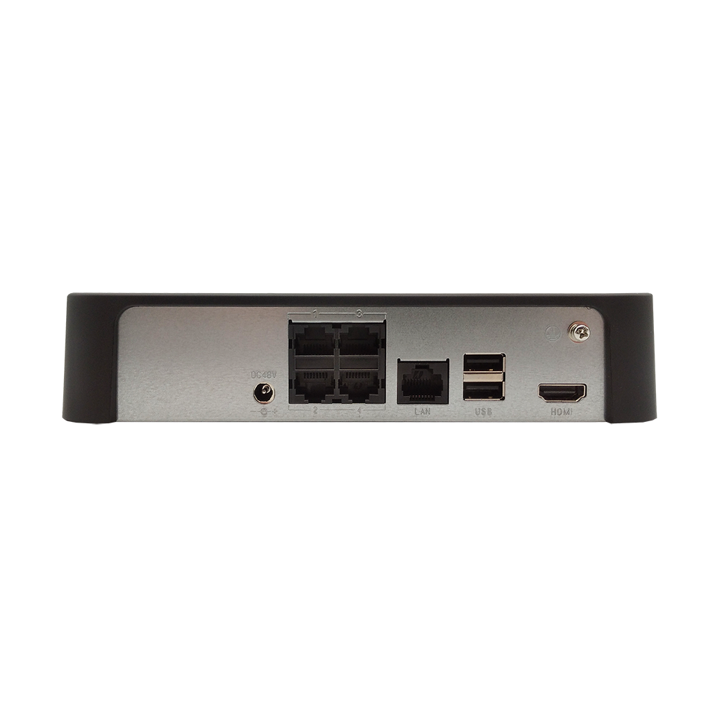- Каналы и разрешение: 4 IP-канала, запись до 5 MP (25 к/с в зависимости от камеры).