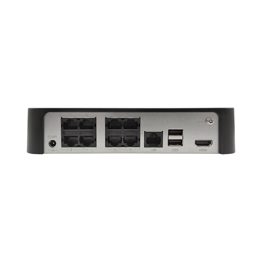 Встроенные 8 PoE-портов, обеспечивающие питание камер по кабелю Ethernet.