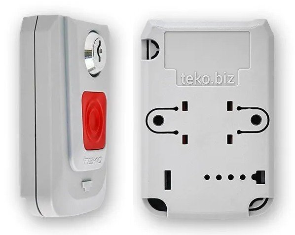 Извещатель охранный ручной точечный электроконтактный, фиксация состояния, 2 возвратных ключа в комплекте, тампер; выход НЗ/НР, U-ком. 30 В, I-ком. 50 мА, IP41, t-раб. -30...+50°С, габ. размеры 85×57×30 мм